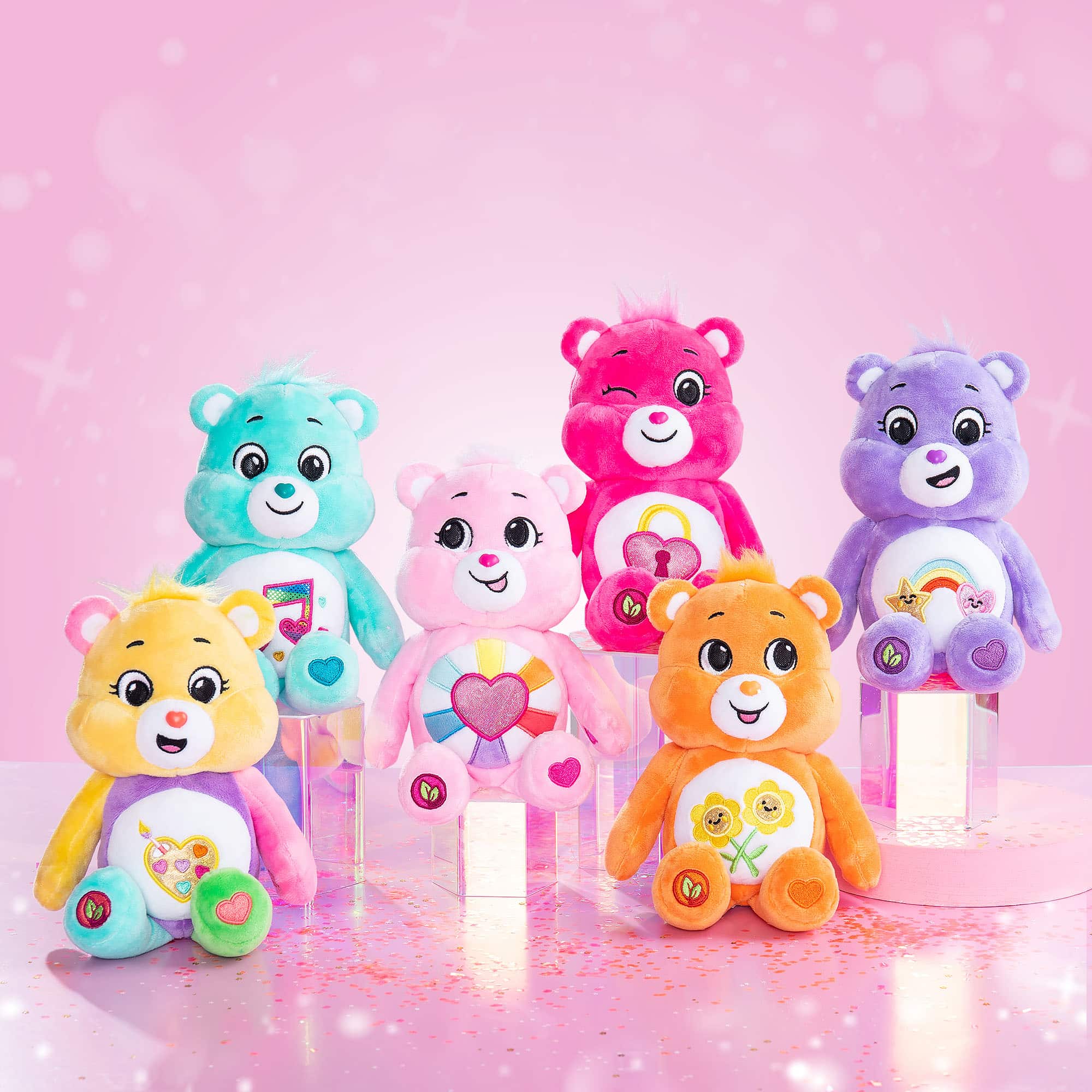 6 to Collect: There are 6 Care Bears Sparkle Plushies to collect, including Best Friend Bear, Heart Song Bear, Hopeful Heart Bear, Work of Heart Bear, Friend Bear & Secret Bear!