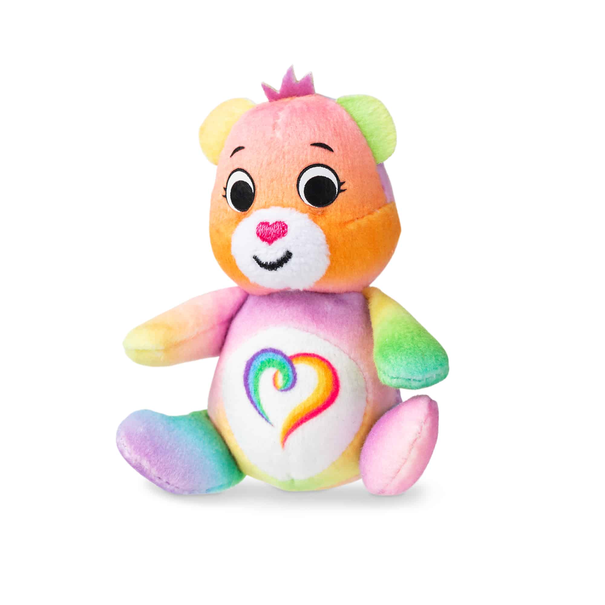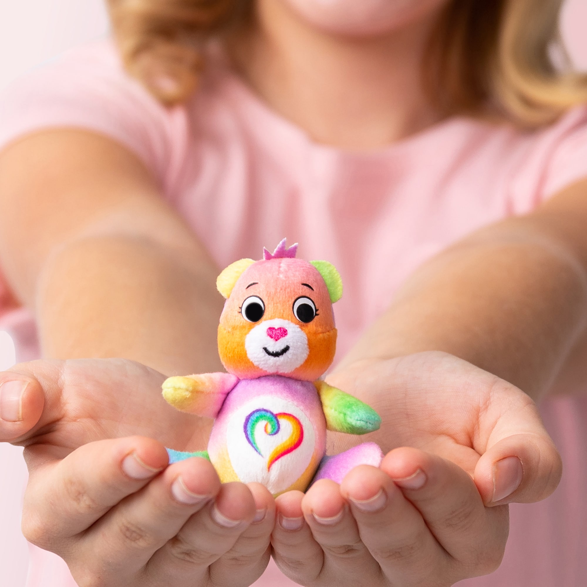 The Care Bears, our favorite loveable huggable BFFs, are here for some BIG FUN at a MICRO SCALE with the Care Bears Micro Plushies! Now you can experience some fun new sharing and caring adventures with your tiniest bestie – Togetherness Bear! This micro Togetherness Bear plush is just 3 inches tall and fits right into the palm of your hand. Keep her in your pocket, your backpack, or just carry her around with you – she’ll brighten your day wherever you go! Her adorable smile and classic heart-shaped nose are sure to delight any child or kid-at-heart. There are 6 Care Bears Micro Plushies to collect – take them all home to complete your micro rainbow collection! Makes a great birthday or holiday gift for kids and Care Bears collectors ages 4 and up!