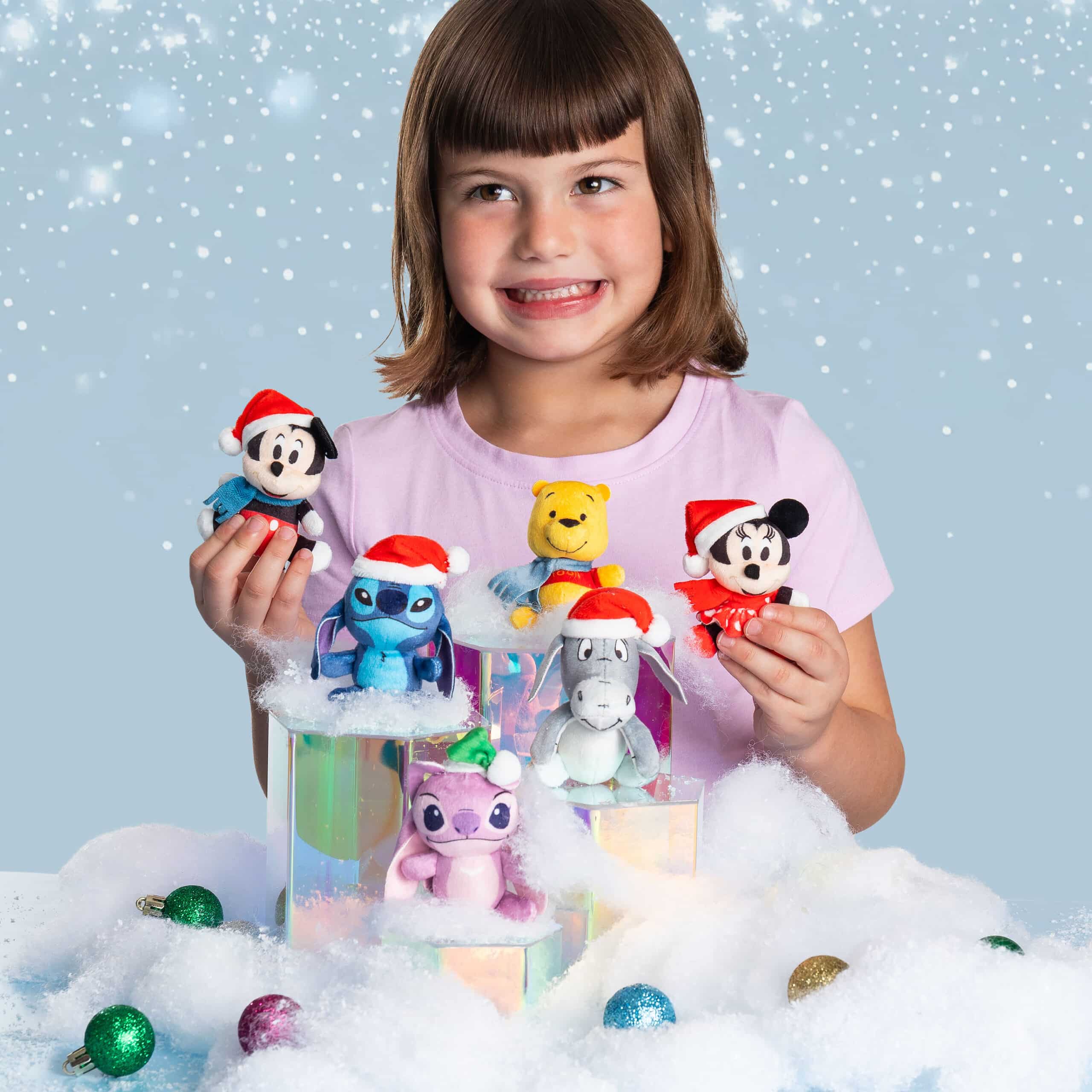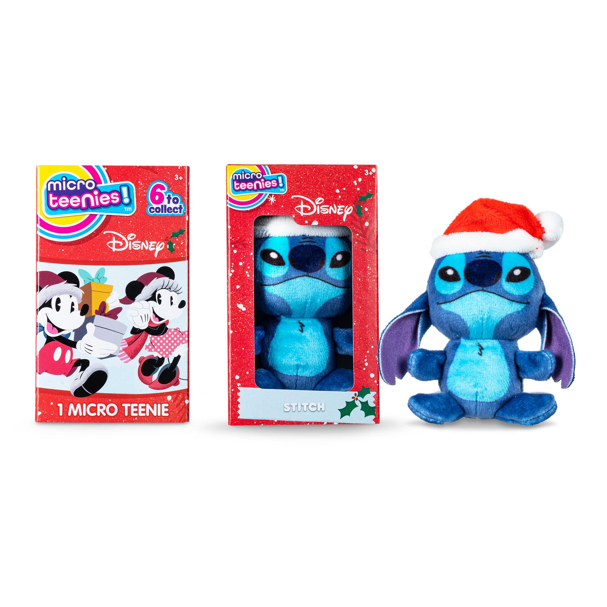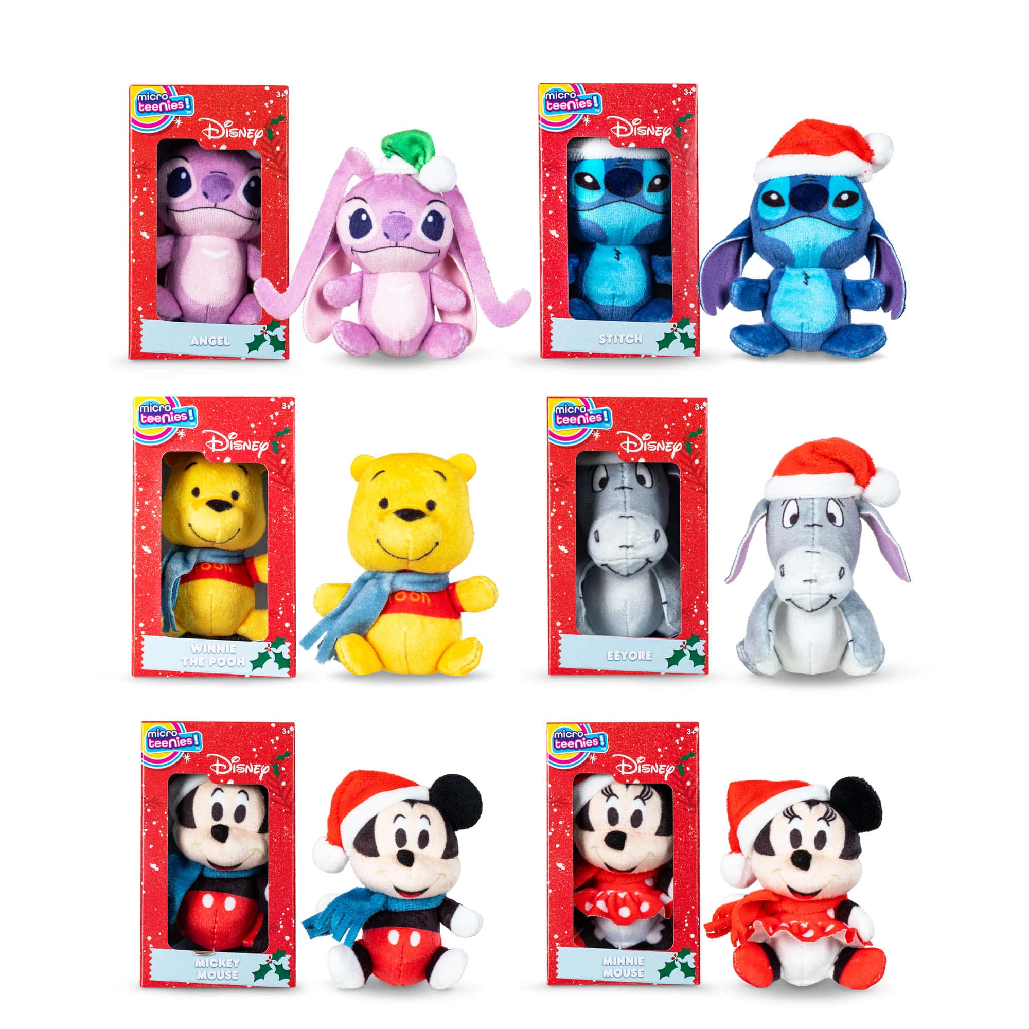 6 Micro Collectibles: There are 6 Micro Teenies Disney Holiday characters to collect including Stitch, Angel, Mickey Mouse, Minnie Mouse, Winnie the Pooh, and Eeyore!