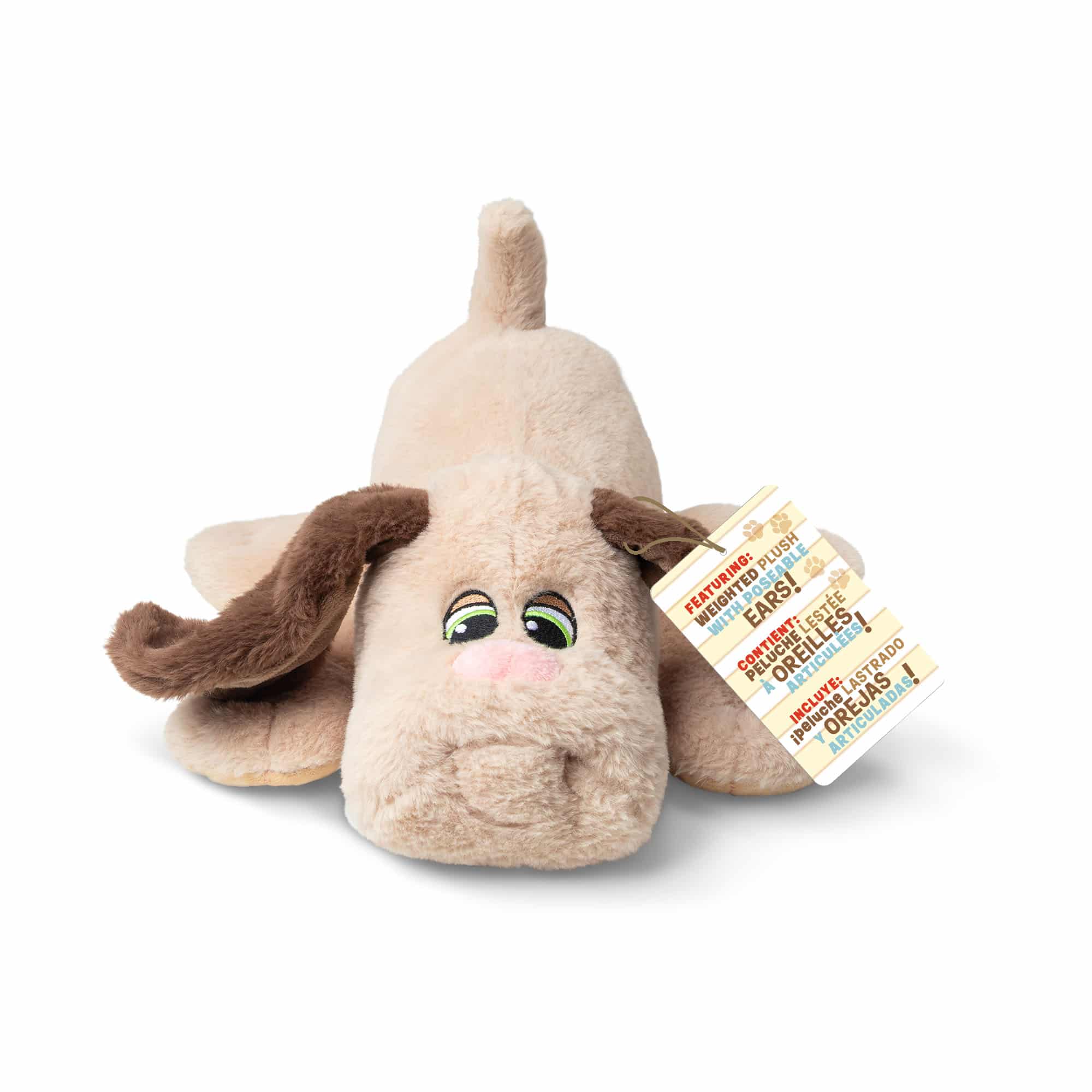 Weighted Snuggles – Tan with Brown Ears: This lovable tan pup with soft brown ears, brings all the love of the classic Pound Puppies you remember—now with posable ears and added weight for extra comfort and soothing fidget play.